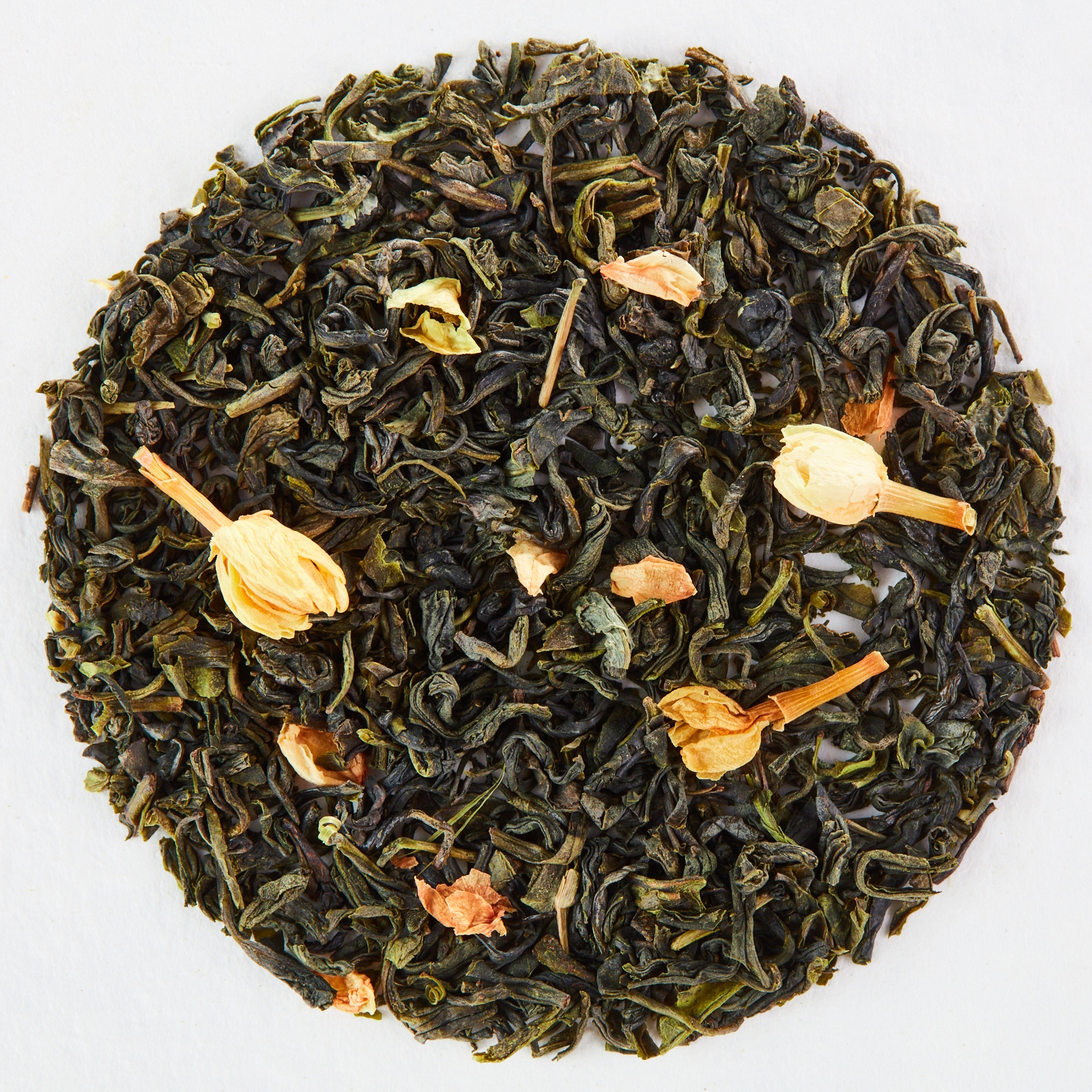 Zbierane wczesną wiosną liście zielonej herbaty przesycone aromatem najdelikatniejszych jaśminowych kwiatów. Lekkie kwiatowe nuty uzupełniają orzeźwiającą słodycz wiosennej, zielonej herbaty. Cud aromat utrzymuje się nawet po kilku zaparzeniach.