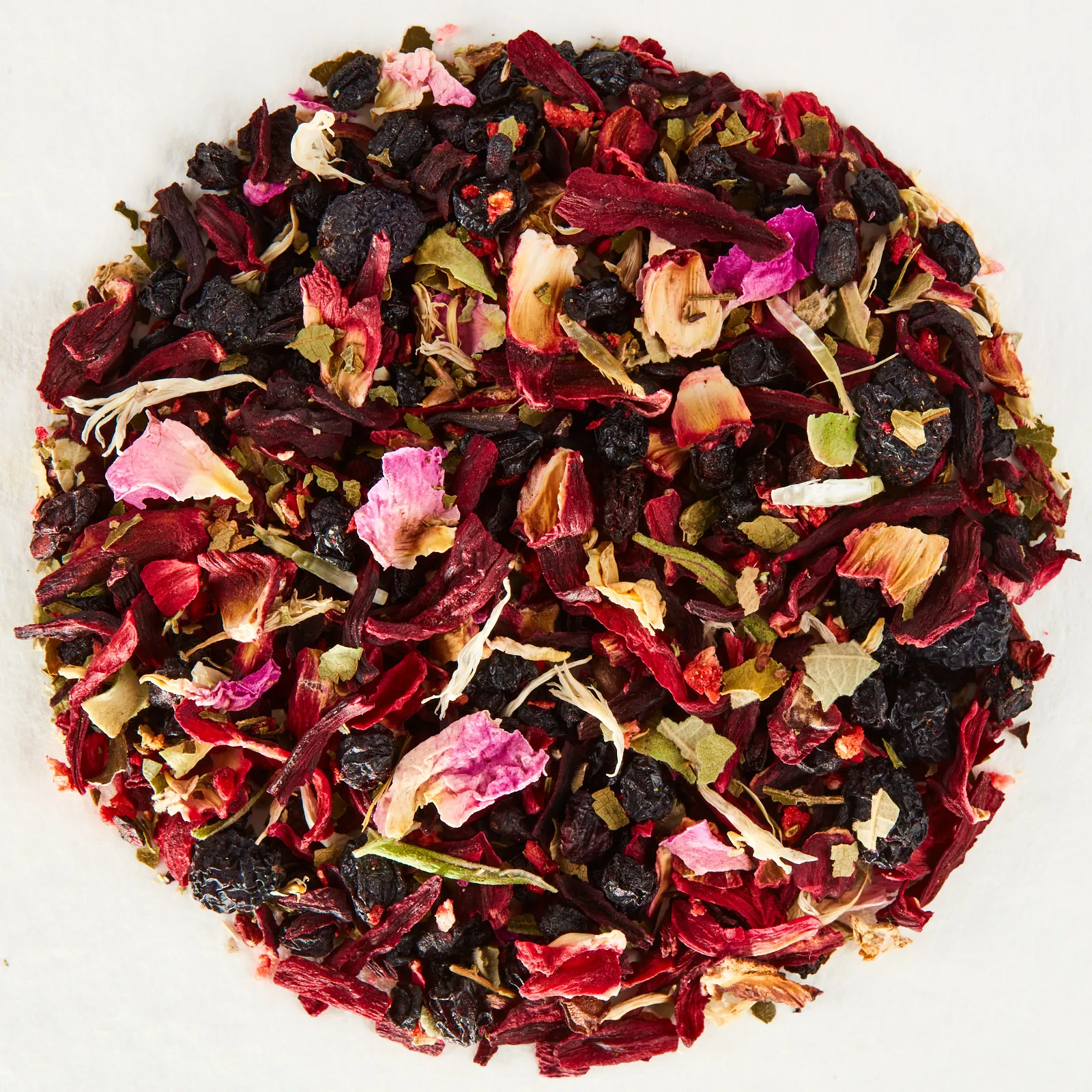 organiczny hibiskus, organiczna aronia, organiczny czarny bez, organiczne liście słodkich jeżyn, liście organicznych jeżyn, płatki organicznych róż, organiczne maliny, kawałki organicznych malin, kawałki organicznych truskawek, organiczne jagody, organiczne czarne porzeczki, organiczne jagody jałowca, płatki organicznych białych chabrów, naturalny aromat bukko brzozowego