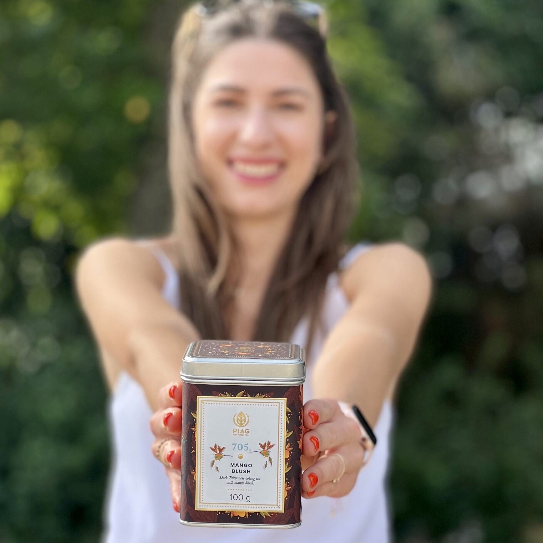 Packaging: Mango Blush by Piag Tea is presented in an elegant tin designed by illustrator and designer Katarzyna Korzeniowska. Each tin is hand-wrapped and hand-packed with love. A true jewel for any kitchen.