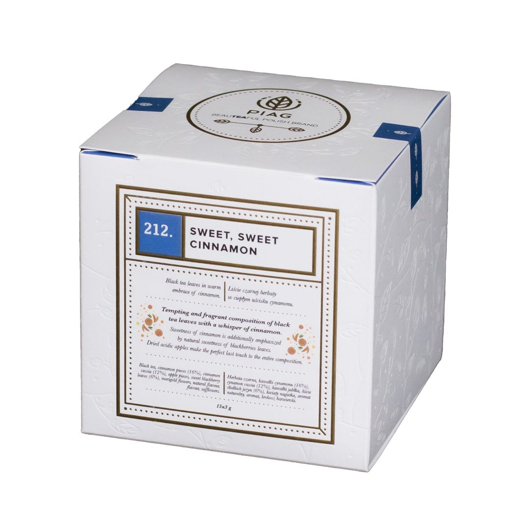 Imagine a magical garden where the sun lazily filters through the leaves and the air is filled with the fragrance of sweet blossoms and ripe fruits. Among the lush greenery grow cinnamon trees, blessed with their aromatic bark that for centuries has been celebrated for its almost magical qualities. From the union of this exceptional spice with noble black tea is born Sweet, Sweet Cinnamon – a Piag The Fresh Tea blend that carries you away to a land of sweet sensations and warm moments.