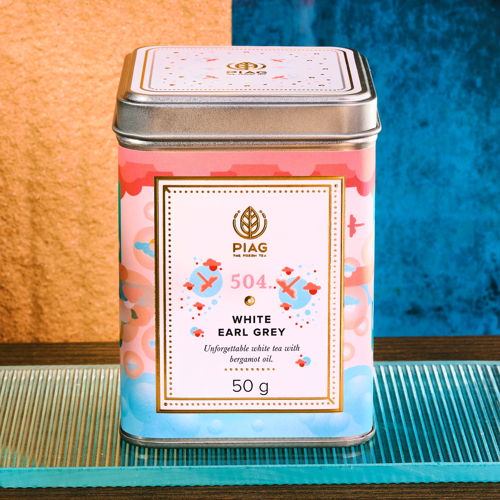Opakowanie: Herbata White Earl Grey Piag Tea zapakowana jest w elegancką puszkę, która ozdobi każdą kuchnię. Wspaniały design autorstwa ilustratorki i projektantki - Katarzyny Korzeniowskiej. Każda puszka oklejana i pakowana jest ręcznie. Wszystko, co robimy - robimy z miłością.