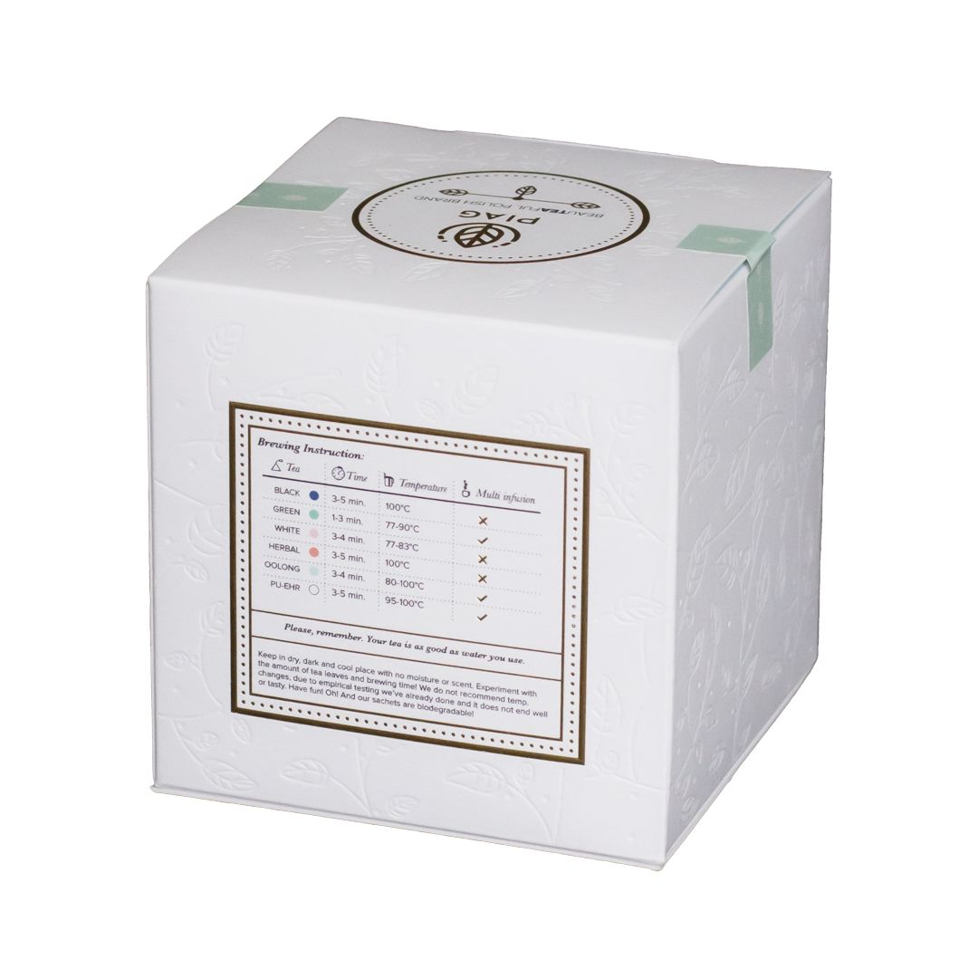 Opakowanie: Herbata Milky Oolong Piag Tea zapakowana jest w elegancką puszkę, która ozdobi każdą kuchnię. Wspaniały design autorstwa ilustratorki i projektantki - Katarzyny Korzeniowskiej. Każda puszka oklejana i pakowana jest ręcznie. Wszystko, co robimy - robimy z miłością.